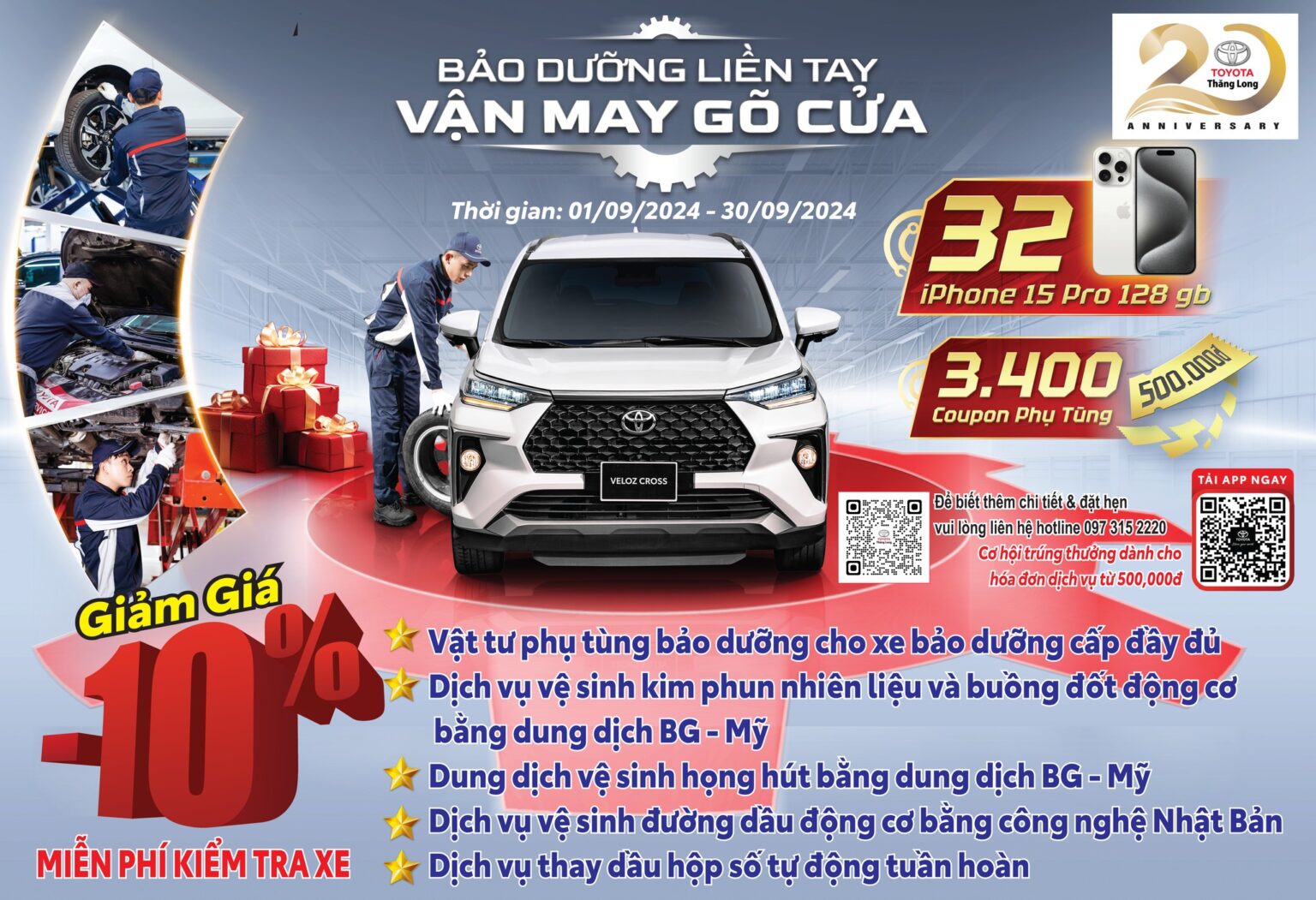 Chào Hè và nhằm nâng cao sự an toàn cho Khách hàng trước tình hình dịch bệnh gia tăng, Toyota Thăng Long triển khai chương trình ưu đãi đặc biệt cho Khách hàng: