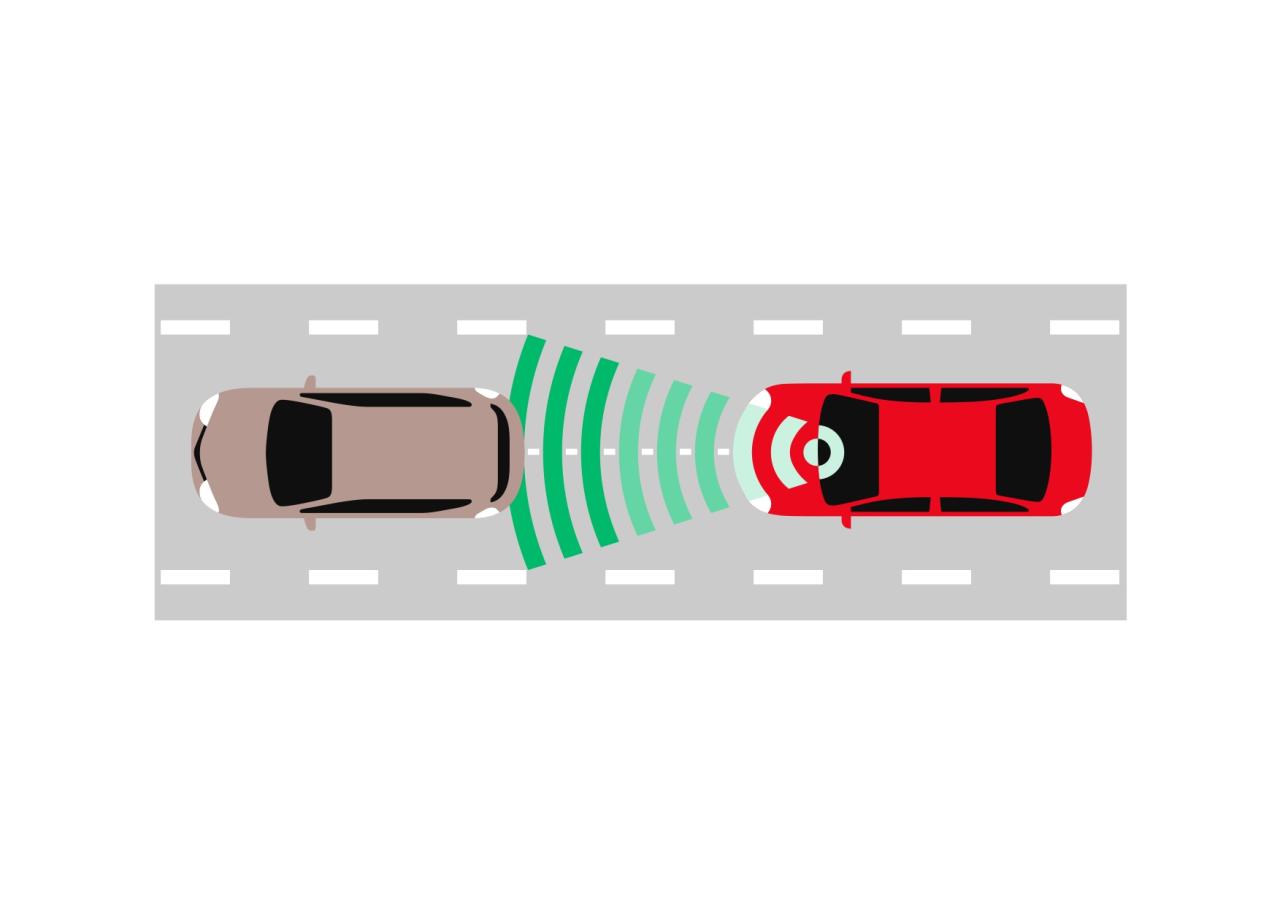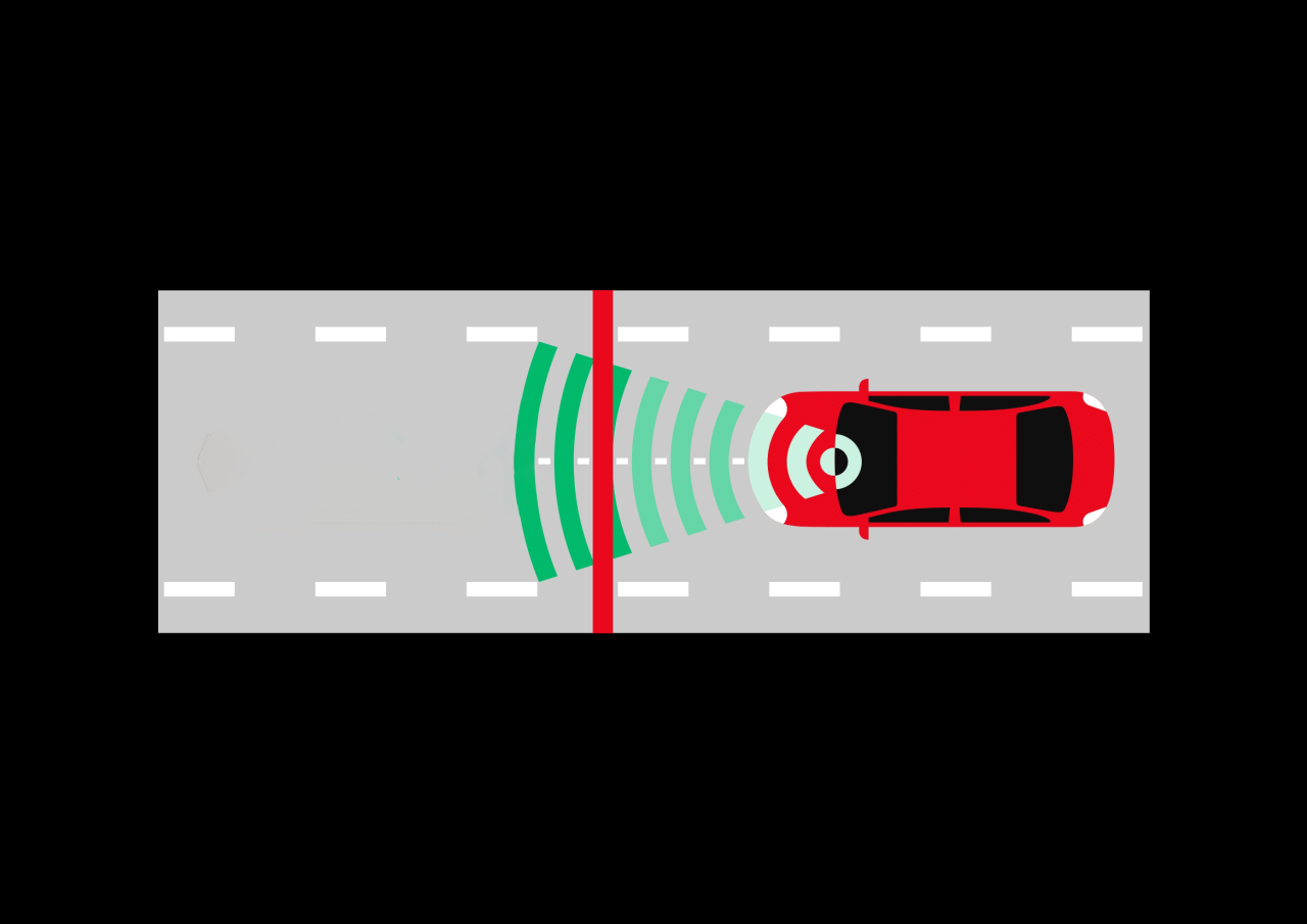 Điều này có nghĩa là, nếu phương tiện phía trước được phát hiện di chuyển với tốc độ thấp hơn tốc độ đã cài đặt, Hệ thống kiếm soát hành trình chủ động sẽ tự động giảm tốc độ phương tiện. Nếu trong trường hợp cần giảm tốc ngay lập tức, hệ thống sẽ cảnh báo hiển thị trên màn hình đa thông tin đồng thời giảm công suất động cơ để hạn chế tăng tốc, giúp tránh va chạm. Sau đó hệ thống sẽ tự động trở lại tốc độ đã cài đặt.