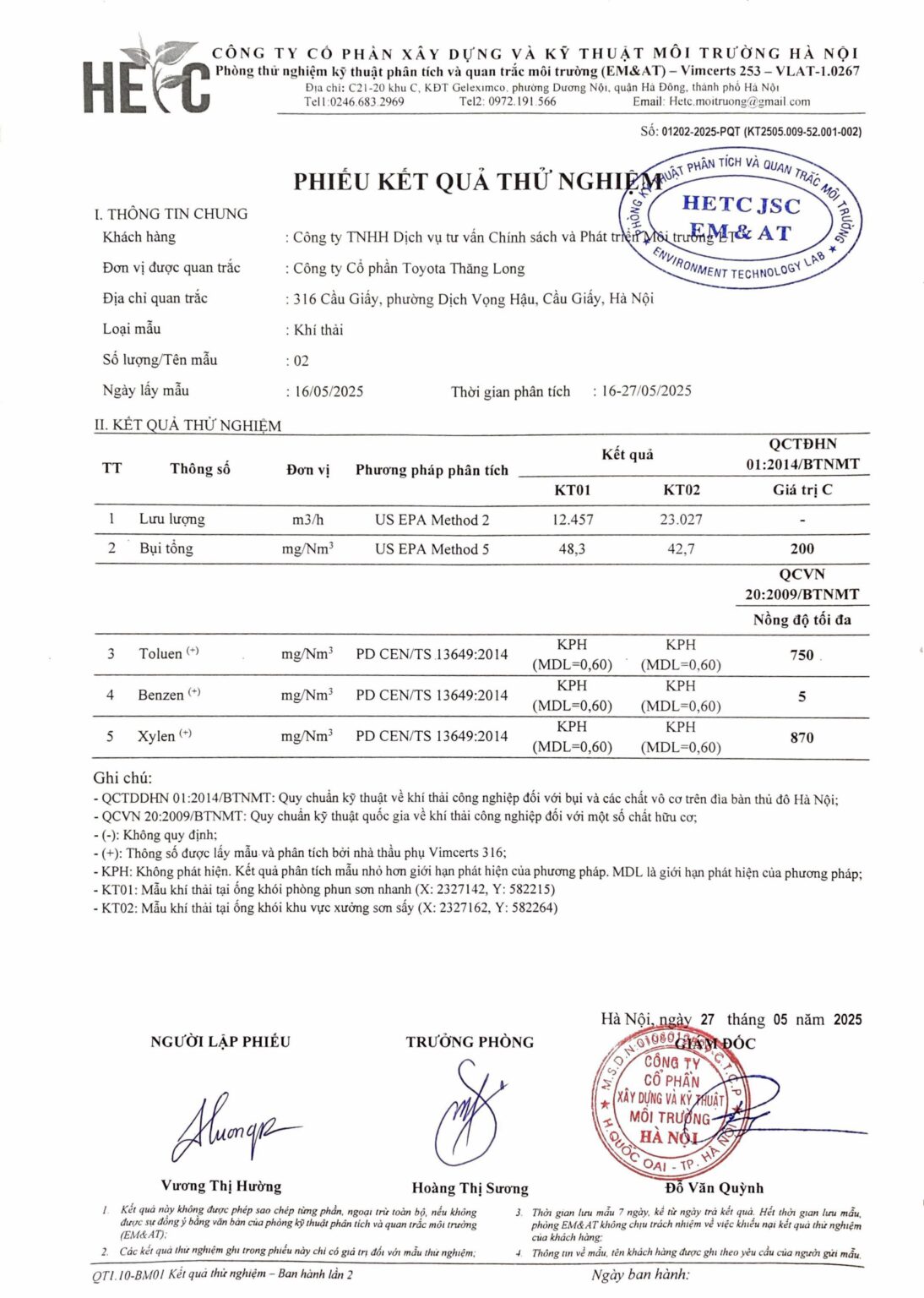 Góc kỹ thuậtkết quả quan trắc khí thải và nước thải đầu năm 2025 admin 08/07/2025 Góc kỹ thuật Bài viết liên quan Apple carplay là gì? Cách kết nối Apple carplay trên ô tô Những “mẹo” lái xe Hybrid tiết kiệm nhiên liệu nhất Dây curoa là gì? Phân loại, thông số và cách tính độ dài chuẩn Bao lâu cần thay lọc gió điều hòa ô tô và cách vệ sinh đúng kỹ thuật Nước làm mát ô tô bao lâu phải thay? Cách kiểm tra và thay nước chuẩn nhất Những lưu ý để kéo dài tuổi thọ hộp số tự động Apple carplay là gì? Hướng dẫn kết nối Apple carplay trên xe ô tô Pin xe Toyota hybrid bền đến mức nào