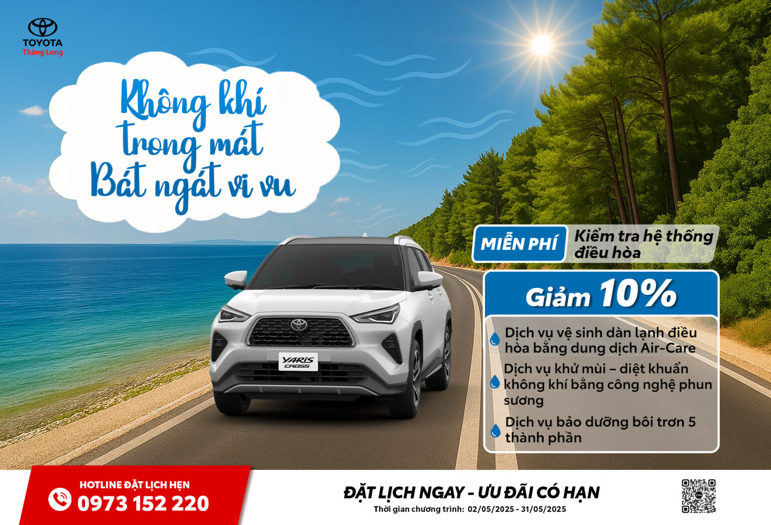 🔥 Hè này, đừng để chiếc xe yêu quý của bạn phải “gồng mình” chống lại cái nóng! Toyota Thăng Long gửi đến bạn chương trình ưu dãi chăm sóc đặc biệt, giúp “xế yêu” luôn mát lạnh – sạch khuẩn – sẵn sàng cho mọi hành trình.
