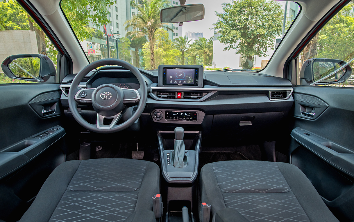 Tiện nghi của Wigo 2023 cũng được nâng cấp với màn hình giải trí 7 inch, kết nối Apple Carplay và Android Auto và được thiết kế đặt nổi, toát lên sự hiện đại cho không gian nội thất cũng như nâng cao trải nghiệm người dùng. Ghế xe sử dụng chất liệu nỉ cao cấp cùng những đường chỉ đan xen tinh tế, mang đến giá trị thẩm mỹ cao hơn.